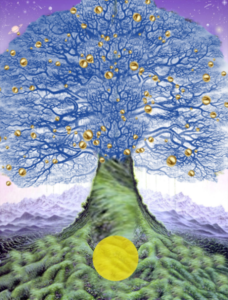 Проявляется второй Образ. Он утверждает связь вашего ТФТ с Внутренним Центральным Солнцем (ВЦС) Земли и иной гравитацией. Вы видите не что иное, как Древо Жизни, на голубых ветвях которого сияют золотыми искорками шарики… А в корнях вы видите голограмму ВЦС Земли… (Рисунок № 8).