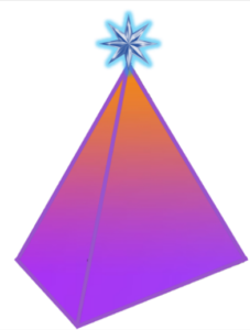 А он у вас уже есть! Посудите сами – три группы эфирно-физических людей, объединённых в триальность взаимодействия, уже представляют пространственно трёхгранную пирамиду, способную придать их действиям законченность. Увидьте, что вы стоите на углах основания пирамиды. Все три группы уравновешены осью пирамиды и её вершиной. На вершине сияет голубым светом восьмиконечная звезда. (Рисунок № 13) Грани пирамиды окрашены в 2 цвета – сиреневый, как цвет эфирно-физической материи, и оранжевый – указание на связь с материей ментальной. Эти два цвета плавно переходят один в другой. Голубая звезда является важным элементом сопряжения эфирно-физической материи икосаэдра с ментальным полем Баэллада; и указывает на присутствие особого магнитного поля, связывающего эти два фрагмента структуры Владимирского Баэллада.